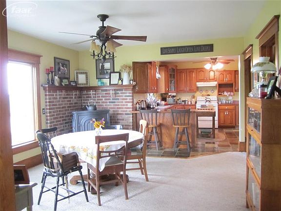 Remodeled Farmhouse-Set towering trees, this 4BR, 2 bath, was built in 1900. Completely renovated w/all new systems. High ceilings, extensive use of rich woodwork, pocket door, wood floors, gorgeous slate tile in kit. & first floor bath, heated floor in bath. Features include a 24'X30' pole barn w/10Ft lean to, 30X50 att. garage/workshop, beautiful family garden, fruit trees & vegetable garden. Professionally landscaped yard w/brick paver walk-way. A Vermont casting wood stove is currently being used to heat the home. Tamarack tree and stone bench are not included in the sale.