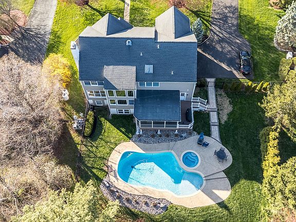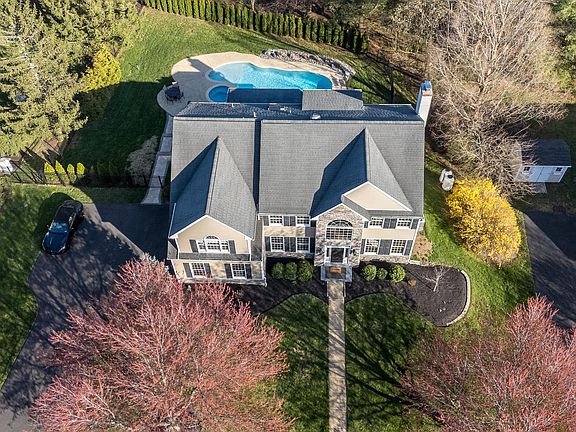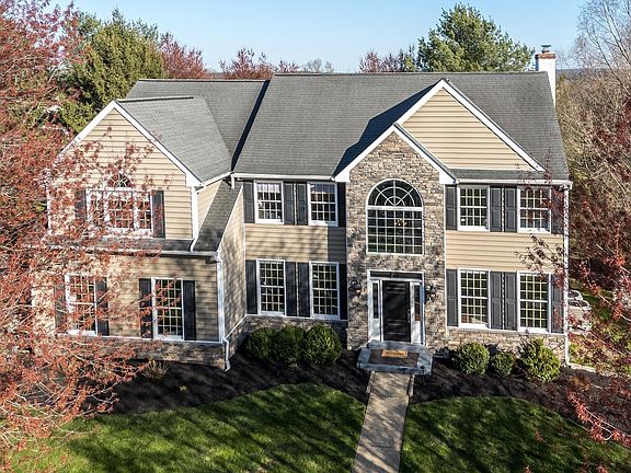 An Extraordinary Opportunity Nestled quietly among the rolling hills and preserved farmland of Plumstead Township’s exclusive Durham Ridge, where limited inventory is the norm and quality homes seldom come to market, this exceptional residence offers a rare combination of refined living, elevated comfort, and undeniable value. Poised on a premium lot with sweeping seasonal views for miles, this 4 bedroom, 2.5 bath Executive Home is a stunning expression of pride of ownership, where every detail has been thoughtfully curated and impeccably maintained. The custom kitchen renovation, completed in 2022, is a masterclass in design and functionality—crafted to delight both the gourmet chef and the high-volume baker. Featuring quartz countertops, GE Profile appliances, a black granite composite sink, custom cabinetry and millwork, a mini-fridge, Wine Storage, designer lighting and a dry bar/workstation with additional storage and prep space, this heart-of-the-home seamlessly balances elegance and efficiency. From the welcoming two-story Foyer, flanked by a formal Living room and Dining room that looks straight out of a Pottery Barn catalog, the home opens to a grand vaulted family room drenched in natural light through a wall of windows. Adjacent, the coziest home office—complete with its own fireplace—offers a perfect blend of warmth and productivity. Upstairs, retreat to a sizeable primary suite with a sitting area, walk-in closet generous enough to house every season’s wardrobe, and an ensuite bath that could be its own spa suite. Three additional bedrooms offer space and comfort for family or guests. Outdoors, the living is equally inspired: an inground saltwater pool with twilight lighting, a propane heater, and integrated sound system wiring promises endless summer evenings under the stars. Enjoy it all from your screened and covered porch, catching the breeze, watching TV and the wonderful view. Meticulously maintained gardens and a tasteful exterior renovation, all highlighted during the evenings with low voltage lighting, speak to the care and attention to detail lavished upon this home. Additional features include Hardwood floors throughout the main level, Primary Suite and main hallway upstairs Side-entry garage Full basement with a large finished area full of natural light ready for play, home gym, media room or your own creative vision Efficient upgraded electric HVAC systems with oil-fired backup for peace of mind A residence of this caliber, at this price point, in this location just minutes from Doylestown, New Hope and Lahaska, is truly a rare find. Whether you're seeking tranquility, elegance, great schools or simply room to live beautifully, this is the lifestyle you've been waiting for. Schedule your private showing today.