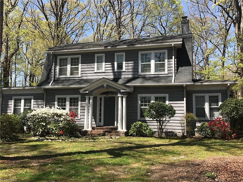 A beautiful and charming Dutch Colonial home w/versatile floor plan that allows for a master BR & bath on main level. If you like lots of HW floors, you'll love this home -- whether as a family home for growing a family or extra room for family guests. It's complete w/game room, sunroom, den w/entertainment bar & huge stone fireplace, kitchen with unique wood counters & breakfast area, 2-car garage and an outdoor basketball court. It also features new zoned AC units and recent roof. You'll love the great potential. For a private showing or more information, call Tom English at 336-419-9026 or email tom at gsoRealtorTom@gmail.com.