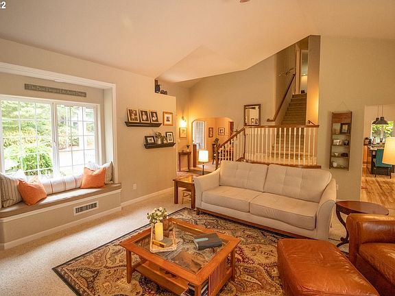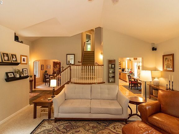 Modern Farmhouse appeal at this south lakes area home just 5 minutes from Woahink park and boat ramp. 3 bedroom, 2 1/2 baths w/gorgeous views throughout. High ceilings, custom fireplace w/Bluestone hearth and built-in bookshelves. Kitchen has stainless app, conv oven, cook island, computer desk and hardwood floors. Large backyard, party patio w/firepit and covered BBQ area. Lovely mature landscaping, fenced storage/RV parking, 2 car finished garage w/epoxy floor on 3/4 acre lot w/circle drive.