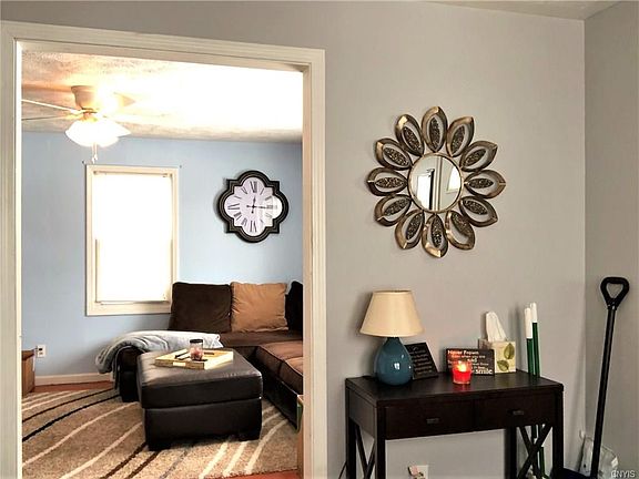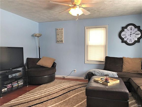 Ranch home located minutes from major highway and Oneida Shores, and within walking distance from many restaurants and stores. Most rooms have been freshly painted, and the hardwoods were recently stained. The kitchen has plenty of counter space and cupboard storage, with stainless appliances that stay. Bathroom has newer vanity, tub/surround, and flooring. Large linen closet in the hall. The basement is very dry, french drain was installed a few years back with a sump pump. Roof was replaced in 2014, insulation and attic vents. Water heater is 4 years old. Large private yard with no neighbors behind.