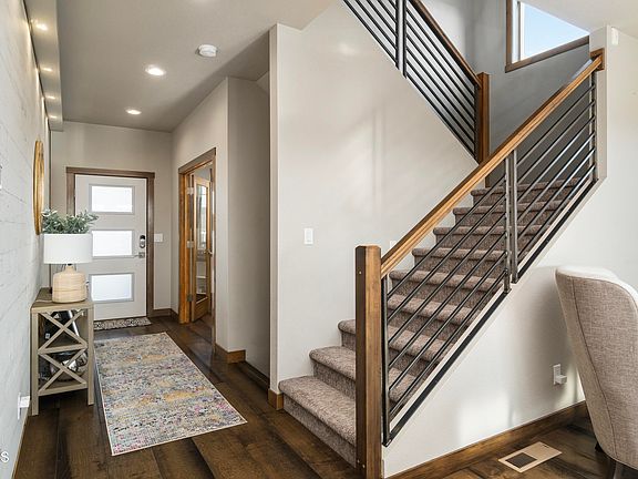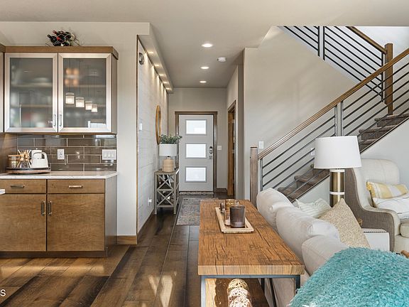 This 4 bedroom home features a dedicated office (not included as a bedroom!) on the main level with beautiful glass french doors! The main floor also features HUGE windows that let in all the light! The living room features an stunning fireplace wall feature which is beautifully backlit and comes ready for your TV as TV mount is included! The kitchen gives you the best of all worlds with upgraded cabinetry, both countertop AND bar-top height to fully maximize seating and island functionality! And be sure to discover the 'hidden' pantry! What looks like just a cabinet pantry turns into a LARGE walk in pantry with a window, light, outlets and more! It's a fantastic feature that will be impossible to find elsewhere in the price range! The main level also features a mudroom, powder room bath and access to your fully finished and heated three stall garage with updated lighting!