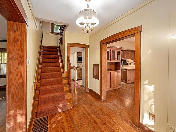 Welcome to this charming all-brick home set on a spacious corner lot surrounded by mature trees. Offering 4 bedrooms and two and a half baths, this home features a thoughtful addition that expands the main level with a private primary suite, complete with two walk-in closets and its own bath, a main-floor laundry room with multiple built-ins and pull down ironing board, and a convenient hall half bath. From here, step out onto the large deck that is ideal for gatherings or quiet evenings outdoors. There is a second addition off of the kitchen and dining rooms that adds even more functionality to the main floor. This warm and inviting family room features a gas log fireplace insert, and two large built-in bookcases on either side. The main living room has original built-in bookcases that add charm and maintain the historic value of the home while the gas log fireplace offers a cozy setting on those cold winter evenings. A small library/sitting room is off of the living room and has a door to a covered porch. Three secondary bedrooms upstairs and a hall bath complete the interior of this home. Outside you will discover a generous 2-car garage with a loft above that provides excellent storage, while a side carport adds additional parking options or lawn equipment storage. There is also a walkout/walkup basement that might have been an original garage. New replacement windows were recently added in the family room and primary suite. With it's blend of comfort, space, and classic appeal, this home is ready to welcome its next owners.