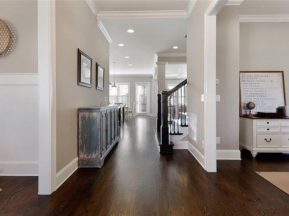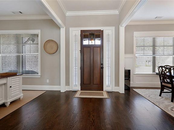 Welcome Home! Better than new, four-side brick home in this sought after gated Milton community. You will not be disappointed on your tour of this light filled home with designer touches throughout. The main floor features a gorgeous eat-in kitchen with an oversized island, granite countertops, a beautiful backsplash, a butlers pantry and a custom walk-in pantry. The kitchen opens to a spacious living room with a coffered ceiling and built-in bookcases. The main floor also features a separate dining room, an office/flex room along with a side entrance leading to a beautiful drop zone and the inviting guest suite with a full bath. The upstairs features an oversized master bedroom with a trey ceiling, spa bath and a huge custom master closet. There are four secondary bedrooms on the upstairs level, one room is oversized and is the perfect space for a media room or playroom. The three other secondary bedrooms upstairs are spacious and each offers a private bath and walk-in closet. This home features beautiful hardwoods throughout, a great backyard with a deck and patio overlooking the fenced and spacious yard offering plenty of space for play, entertaining and room to add a pool. The daylight basement offers great storage, is stubbed for a bath and is ready to finish. The three car oversized garage with side entry make this one not to miss. The home features many upgrades and has been meticulously maintained. All schools are A++. Home is on sewer, not septic.