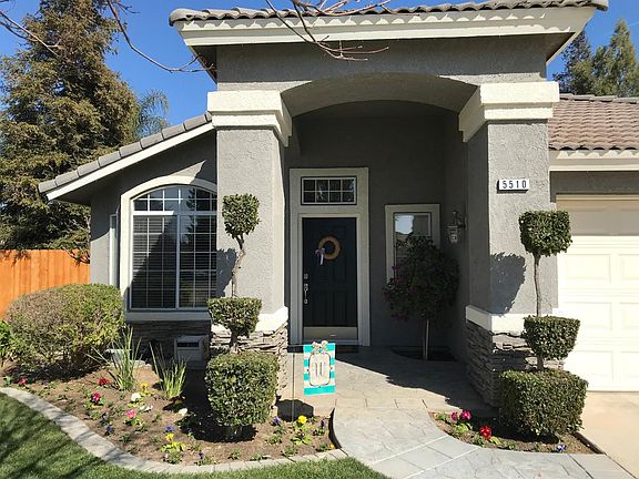 Welcome Home! Beautifully maintained NW Fresno home on an oversized 10,710 sq ft lot. Living room has a full mirrored wall, 5'' wood like flooring, bright & cheery kitchen & family room. breakfast bar, baker's rack (exclude copper pots), stainless steel appliances, appealing white tile & cabinets with picture windows overlooking lush yard. Family room has nice built-in cabinet, fireplace, & window views of a picturesque yard. Main bath was updated with tile floor, counter & sink, bedroom closets have organizers, ceiling fans, some crown moldings, blinds. Amazing master bedroom suite with his & her closets, den, sitting area or office, master bath with tile floor, his and her sinks. Backyard is entertainers' delight w/stamped concrete, covered patio, wood deck area, pergola with spa, outdoor bar & dining area, small bar refrigerator & barbeque. Wood shed that has electricity, playhouse & swing set. 3 car garage, extra concrete next to it. Garage has cabinet marked that's included.