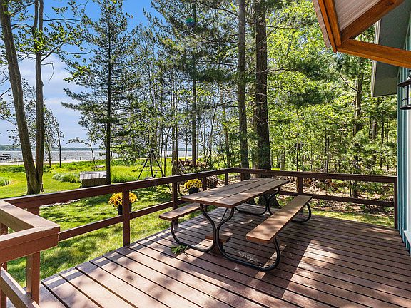 This Bass Lake cottage has the up north woods & water views you've been looking for! Bright and refreshed open concept kitchen/dining/living areas with sliders looking east over expansive Bass Lake--a 524 acre spring fed all sport lake. Inside you will find a spacious and open main living area, 3 bedrooms, one full bath and a great sitting room overing the private and wooded back yard. The spacious yet private front yard has been cleared some for great views of the lake but left private enough for privacy. The beach & dock are located across this very quiet, low traffic street--This is shared, voluntary association and currently very few families pay for using it. This is a huge asset to the property! There is a hidden gem of a Lake Michigan very close by! The best of both beaches