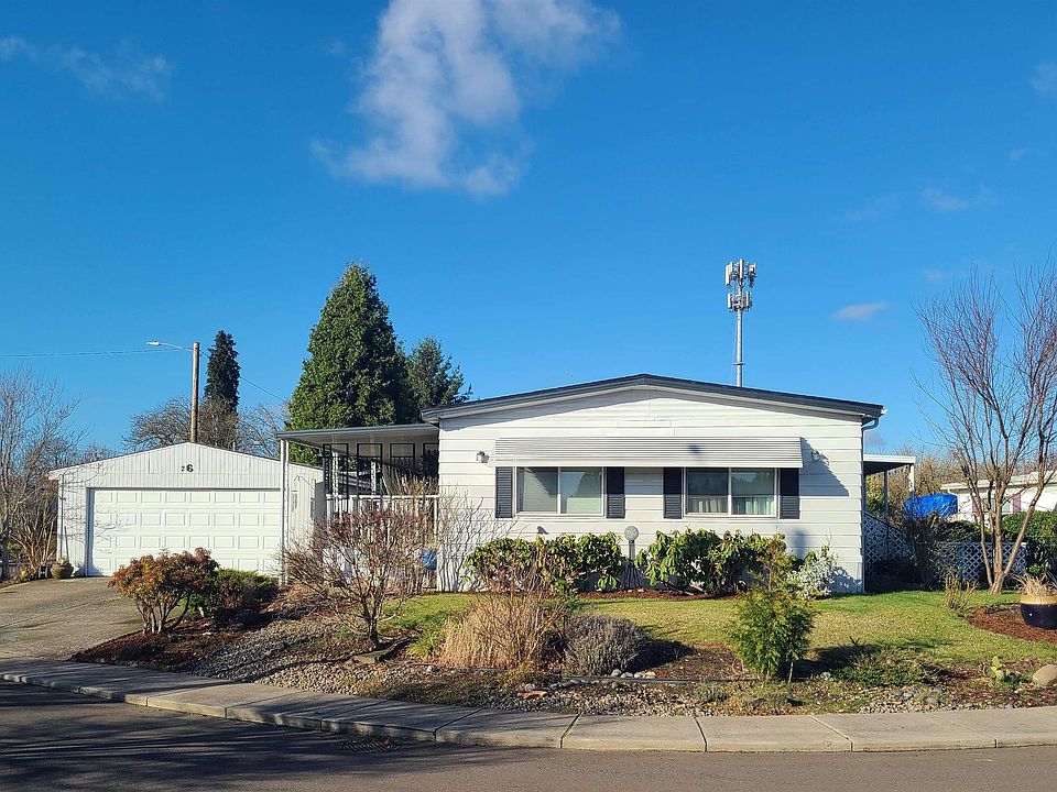 ACCEPTING BACK-UP OFFERS!!! HOME WARRANTY INCLUDED! Beautiful home in desirable 55+ park in Keizer with GARAGE, workshop & storage shed. Large corner lot with fully fenced yard. Covered patio, laminate flooring, vinyl windows, wood accent wall & ceiling in kitchen. Family room & living room. 2 bed/2 bath, one with a walk-in shower. Furnace recently serviced! Includes: washer/dryer/range/fridge. Conveniently located, near I5, golf course, bank, doctor, store. Pool & clubhouse are right across from the home!