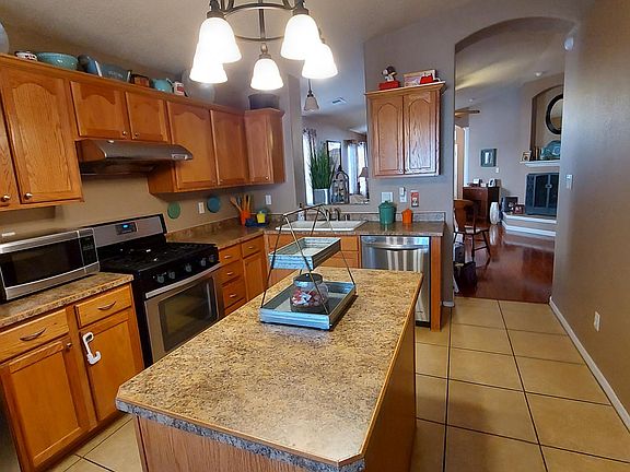 Vaulted ceilings, laminate wood floor and cozy fireplace in the living room. Kitchen has tile floors, island, tons of cabinet/counter space, and stainless steel appliances. Large master bedroom with walk in closet, carpet in all bedrooms, and two nice sized bathrooms. Backyard is fully landscaped with a covered patio. Home has a tile roof and AC. Refrigerator, washer and dryer. Volcano Vista high school district. Near restaurants, shopping, immediately off of Coors Blvd and 5 mins to either I-40 or Montano Blvd. NO SMOKING. NO PETS. First and last months rent are required plus a $400 security deposit. Each occupant over 18 years of age will be required to complete an application with background check and credit check.
