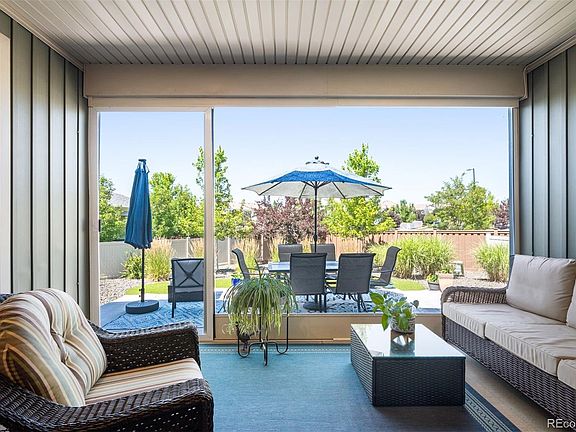 Discover the allure of 5511 Himalaya Road, a ranch home nestled within the sought-after 55+ haven of Fairway Villas. Immerse yourself in maintenance free living, a captivating open floorplan, & an enchanting screened in porch where you can enjoy year-round sunshine! As you step inside the sun-soaked interior, you will take note of the vaulted ceilings, gleaming laminate hardwood flooring & custom interior painting that provides a welcoming ambiance. The main living space is comprised of the family room, dining room & kitchen – perfect for the seasoned host. The kitchen, adorned w/ a grand central island, granite countertops, & an array of storage solutions including pull-out cabinets, stands ready to indulge your culinary dreams. The screened-in porch is an extension of this main space, allowing you to bring the outdoors in – an automated sunshade provides extra relief on hot summer days. Seek more sun-soaked moments? Venture to the newly added back patio where you can enjoy the peaceful backyard featuring a turf yard + a drip system to all the plants. The primary suite is ideally positioned, creating a relaxing retreat. With views of the backyard & luxurious bathroom, this will be a true oasis. The en-suite bath features a spa-like walk-in shower, double vanity, & large closet w/ built-in organizational system. Guests have their own space w/ a spacious bedroom on the opposite side of the home + a full bathroom. The main level is complete w/ an office/flex room & large laundry room that provides additional storage. The unfinished basement offers endless possibilities for function – you can let your imagination run wild! The Fairway Villas community is adjacent to the Green Valley Ranch Golf Club ideal for an avid golfer. Within the community itself enjoy the clubhouse, exercise center, in-door & outdoor pool, spa & plenty of events! This active & vibrant community offers an unbeatable location with quick access to shopping, dining, DIA, major highways & MORE!