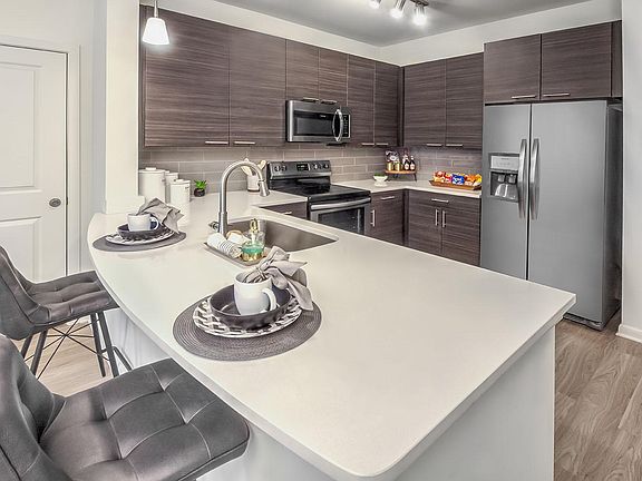 This home features 9 ft ceilings, Frigidaire Stainless Steel appliances, quartz countertops, built in microwave, full size washer/dryer, walk in closet, oversized tub, and private patio with storage. We also have a Dog Park on site, Fire Pit, Grilling Station, state of the art Fitness Center and 24 Hour Clubhouse equipped with a Pool Table, free Wifi and mounted Scrabble Board! Price based on a 14 month lease. Valet Trash + Pest Control = $33/month Residents responsible for utility charges. Pet Friendly. $325 Pet Fee/Pet; $15/month Pet Rent/Pet Smoke Free Community
