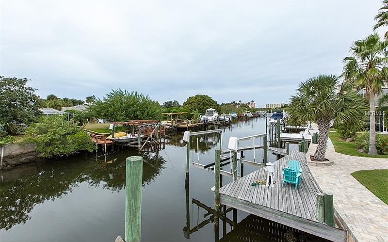 Exceptional value, move-in ready, elevated home in Sea Forest on a deep water Gulf access canal with no fixed bridges and sailboat accessibility. Charming curb appeal welcome you to this 2174 sq.ft., 3 bedroom, 2 bath, 2 car garage home. You'll love the waterfront lifestyle and nightly sunset views! Split bedroom plan and interior laundry room are just two great features. The volume ceilings and sky lights make everything feel so open and airy in this home. The gas fireplace in the living room gives it a comfy charm. Formal dining room and eat in kitchen, not to mention the huge screened lanai area, make this home perfect for entertaining. Take the party right out to the backyard onto a 24 x 12 dock where you can easily park your water toys, fish and watch for manatees. There is also a gigantic 6.2" tall crawl space (1800 extra square feet) under the home behind the garage that would be perfect for storage or a workshop area. This room measures 36x60 with low, yet walk-able ceilings, 4 electrical outlets and a 220 panel. This home was a builders model and was designed by an architect and interior designer. All that's missing is you! Sea Colony is a member the Gulf Landings with its gorgeous community center, swimming pool and tennis courts and private boat ramp. Membership to the exclusive, private Gulf Harbors Beach Club is available wig ownership for just $144.00 a year. Don't miss out on this unique waterfront opportunity. Call to schedule your private tour today.