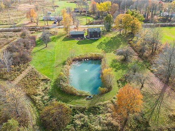 Distinctive 3 Bedroom New England Style Salt Box Home built in 1995. Situated on 2 beautiful scenic acres with a stocked pond. You will really love the Vaulted ceilings with open concept and sky lights. Offering a First-floor bedroom and full bath. 2nd floor boasts the Master bedroom with master bath, jacuzzi tub and also the 3rd bedroom. Kitchen has new counter tops and appliances stay. New window above kitchen sink. Full clean basement with egress window. Washer and dryer stay. 3 car detached garage. Brand new carpeting in 2nd floor bedrooms. Newer laminate flooring throughout first floor. New gravel driveway. New landscaping. Nice Side deck. New water softener. Exterior and Interior have been freshly painted, so this is definitely a move in ready home that comes with a 1 year home warranty as an added bonus! Don't let this one slip by. Lots of charm! Call Today to schedule your Personal Showing!