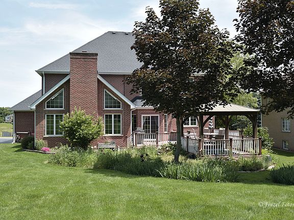 This impressive executive all-brick custom-built home is located in Berian Estates of Crystal Lake. It boasts a generous 3,625 square feet of above grade living space, providing ample room for comfort and luxury and an additional 1900 square foot basement. The home features 5 bedrooms and 5 bathrooms, ensuring plenty of space for all. As you step inside, imagine the two-story entryway, welcoming you with elegance and charm. The gourmet kitchen is a chef's dream, complete with granite countertops, 42" cabinets, upgraded appliances, and a convenient center island with a cooktop. Hardwood flooring flows throughout the main level, adding warmth and sophistication. On chilly evenings, picture yourself in the vaulted family room, cozied up by the fireplace. The oversized primary bedroom awaits, offering a tranquil retreat with vaulted ceilings, walk-in closets, and a luxurious bath featuring a soaker tub and split sinks. For entertaining, the full finished basement includes a bar area, perfect for hosting gatherings, theatre and workshop space. Step outside onto the deck, where you can relax in the sun or covered while enjoying views of the surrounding woods and your private gardens. The home is situated on a large private lot, enhancing your sense of privacy and tranquility. Excellent schools and convenient transportation options make this property even more appealing. Main floor Bedroom can be Den/Office with access to full bath. Neutral decor, bring your ideas and make it your own! Recent improvements include 42 new windows, newer HVAC and tankless water heater.