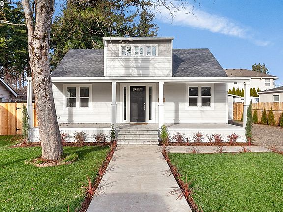 Stylish renovated Farmhouse with huge covered front porch! Light, bright and everything is new! Hardwood flooring, modern bathrooms, quartz counters, 2 laundry areas, finished basement, 3 bathrooms, open kitchen and living room, french doors from kitchen lead to private/quiet fenced yard with shed. Quiet dead end street. Sellwood middle school, Walkable to Woodstock, Springwater corridor, parks, minutes to shopping east and west. Don't miss out!