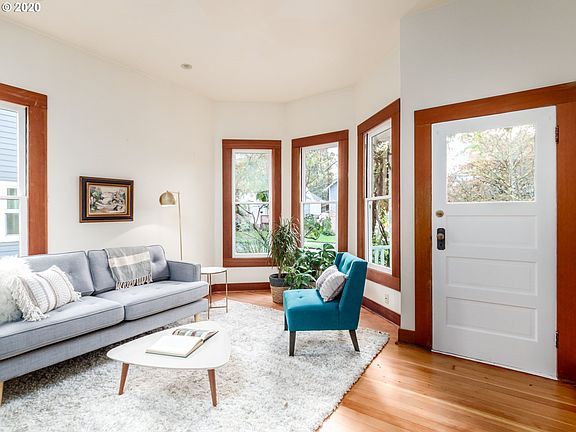 Portland-Cool Bungalow with Victorian flair features newly refreshed fir floors, high ceilings, new interior paint & fixtures, built-ins, large wood double-paned windows, butcher block kitchen counters with oversized subway tile backsplash and a large professional gas range. Lower level daylight bedroom/bonus space has French Doors opening to a patio and lovely private yard with hot tub, semi-covered deck, fruit trees and outdoor sauna. Upgrades include tankless hot water heater and Central AC. [Home Energy Score = 5. HES Report at https://rpt.greenbuildingregistry.com/hes/OR10187843]