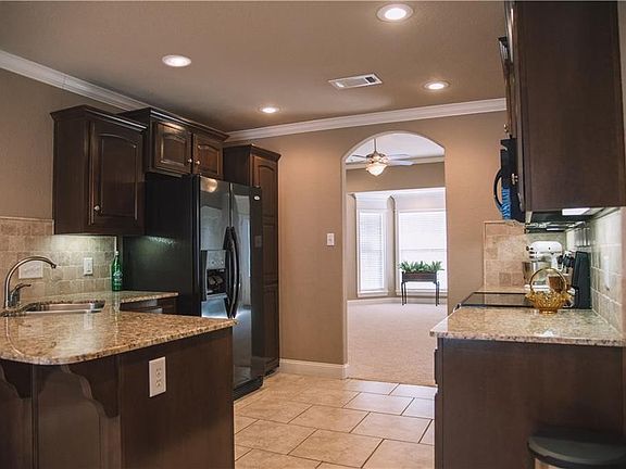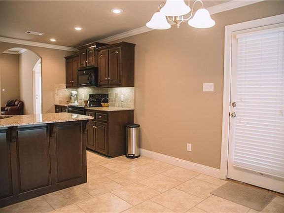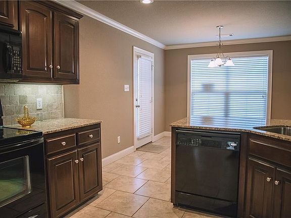 Rock fireplace, crown moulding, trim details, open kitchen with breakfast nook, granite countertops, lovely arches, soaring ceilings, jetted tub, rock and brick exterior. Very well insulated. Beautiful formal dining room. Large covered patio with ceiling fan. Two car garage. Fenced yard. Two sinks in each bathroom, as well as full-width, framed, beveled mirrors. Bay window in living room. Walk-in closets. Linen closet in laundry room. Ceiling fans in every bedroom. Call 479-200-7222 for a showing.
