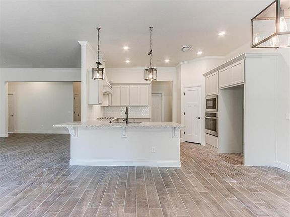 10K in closing costs incentive! Introducing the Bedford floor plan, meticulously designed to offer comfort and sophistication. Prepare to be enchanted by the porch views. As you step inside, you'll be greeted by the inviting open entry and dining room, seamlessly leading you into the open-concept living room. The cozy fireplace exudes warmth, creating a cozy ambiance for memorable moments with loved ones. The kitchen boasts elegant granite countertops and a stylish breakfast bar, effortlessly flowing into the beautifully illuminated breakfast area. A p hallway leads you to the luxurious primary suite, adorned with lofty ceilings that add a touch of grandeur. The primary bathroom is a haven of relaxation, featuring a dual-sink vanity, a soaking tub, a separate shower, a private toilet area, and an expansive closet that caters to all your storage needs. The three main bedrooms are thoughtfully situated along their own private hallway, offering both privacy and convenience with a shared bathroom. Additional highlights include a generously proportioned laundry room, and a powder bathroom conveniently located near the entry, adding a touch of sophistication to your guests' experience. But what truly sets Asheville apart is its incredible array of family-friendly amenities. Beat the summer heat at the splash pad and swimming pool, where you can cool down and have a splashing good time. The sports court and playground are perfect for a day filled with play and laughter. Take a leisurely stroll along the nature trails and immerse yourself in the breathtaking views. Your furry friend will also have a blast at the community dog park. And let's not forget about the unbeatable location! Asheville is conveniently situated near Boeing and Tinker Air Force Base, making commuting a breeze. With easy access to I-40, you'll have the freedom to explore the surrounding areas and enjoy all that this vibrant community has to offer.