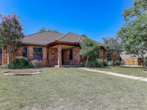 A covered front porch welcomes you into a delightful ranch with freshly painted interior! Fireside living room with bay window opens to formal dining area with exposed brick and bright, casual dining in kitchen. Fit for any chef, kitchen features ample cabinet storage and counter space, wall oven, charming built in cooktop nook with room for any cooking needs. Expansive primary bedroom with tray ceiling, walk in closet, luxurious ensuite bath with garden soaking tub, skylight, dual sink vanity. 2 good sized secondary bedrooms, one with direct bathroom access, share spacious full sized updated bath. Lots of built in storage. Enjoy the outdoors from the covered patio with room for entertaining and relaxing!