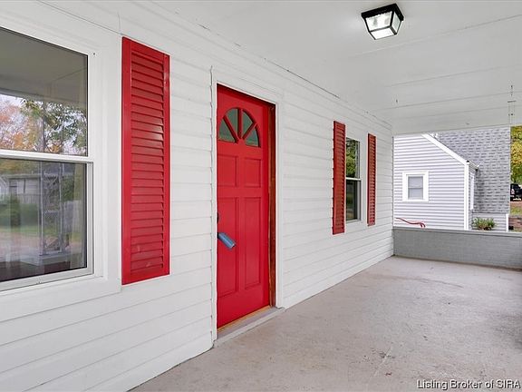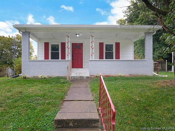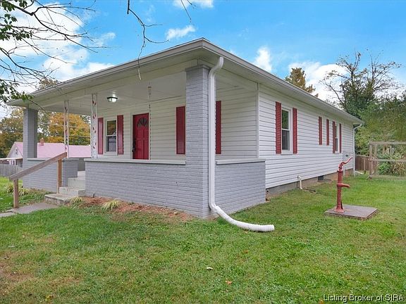 Cozy remodeled 2 BR bungalow in Floyds Knobs. Kitchen is complete with newer appliances, granite countertop, & ceramic floor. Two full baths, both recently updated. Check out the barn door to the main bedroom bath! Other updates include new windows (2022), gutters (2022), water heater and roof (2017). Original hardwood floors that have been refinished, relaxing front porch, unfinished basement for storage, & fenced back yard complete the picture. Super convenient location less than a block from US 150. Schedule your private showing today! Home is being sold AS-IS.