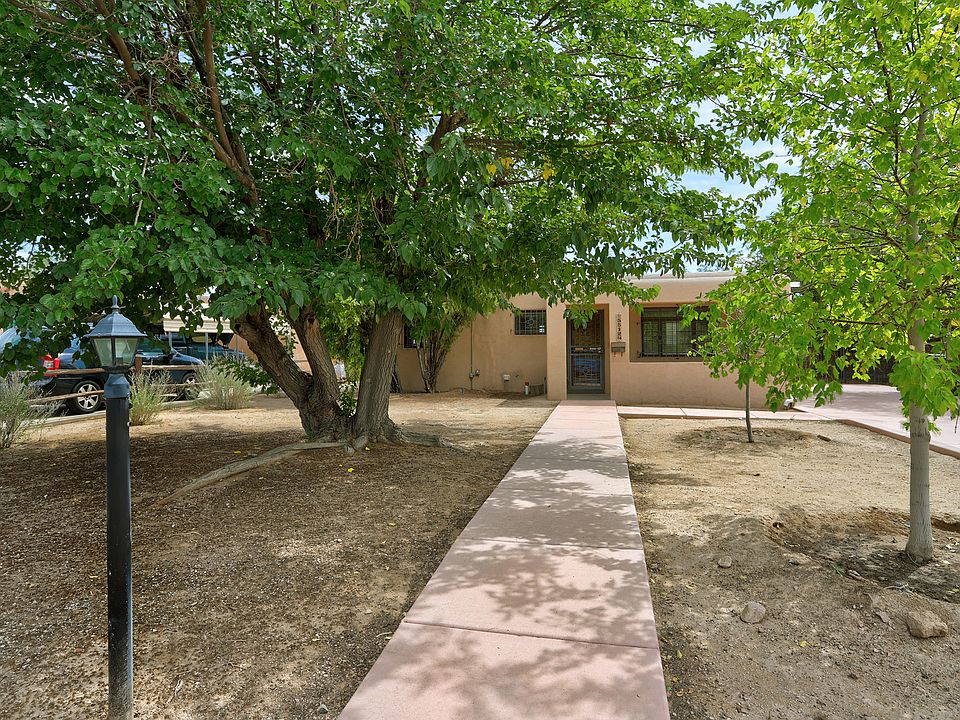 Available for immediate move-in on 8/30/25. Cozy 2 bedroom, 1 bath, with hardwood & tile floors, new bathroom, kitchen & laundry room with laundry sink and hook-ups for your full sized stackable washer/dryer. Ceiling fans in bedrooms. New cabinets & appliances, granite countertops, dishwasher, disposal, & microwave. Air conditioning, blinds, water softener, on-demand water heater, recessed lighting, security bars and doors, off-street parking in concrete driveway. Large fenced back yard with concrete patio & storage shed. Close to UNM, Smith's, Sprouts, Whole Foods, Trader Joe's, Ace Hardware, Bus Lines, ABQ Uptown/Coronado, I-25, etc... On bike path to UNM North Campus & ABQ Uptown. No smoking & no cats. 1 dog okay with pet fee. Tour during open house Labor Day weekend Sat, Sun, Mon 4 - 5. Applications through Zillow. Tenant pays all utilities: Electric, gas & water/sewer/trash. No cats and no smoking. Max 1 dog with pet fee. No smokers and no cats.