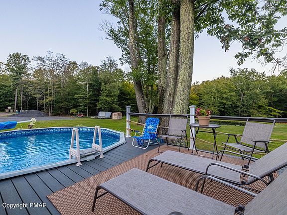 Modern FARMHOUSE with incredible pride of ownership, 4 BEDROOMS, 3.5 BATHS, plus IN-LAW SUITE bordering 180 acres of Preserved Land with views of Mt Wismer as a backdrop, a Fish-Stocked Pond, Pristine Stream frontage and Waterfalls seen from NEW viewing DECK on the Middle Branch Brodhead Creek. SHORT TERM RENTAL Friendly Township. This home features a sunny 4 season room with Skylights that is being used as FOYER/OFFICE with a separate entrance. The Kitchen boasts granite counter tops, a butcherblock island, tile backsplash a Sub-Zero refrigerator, a Gas range and a Harmon Pellet Stove that takes the chill out of the air. Outside enjoy views from the porch swing, Mature trees, Professional Landscaping, a HOT TUB under a covered porch, HEATED ABOVE GROUND POOL. Second floor laundry next to the Primary bedroom with completely RENOVATED bathroom, a soaking tub and a separate shower. Attached to the Farmhouse you'll find the Ultimate MAN-CAVE with 2-car OVERSIZED GARAGE with WORKSHOP area. You can create more living or recreation space in the Unfinished BASEMENT with Wood Stove. There is an Additional DETACHED 2 car Garage and an IN-LAW SUITE Complete with, 1 bedroom, bath and kitchen, this is a potential rental income. Property includes stream frontage and waterfalls. ADJACENT 3.07 ACRES parcel can be purchased. This land has a perc test and septic design on file with the township. Keep the land for additional privacy or sell it in the future, it has a separate PIN number. Picture yourself living and working in the country, only TWO HOURS from Philadelphia and New York.