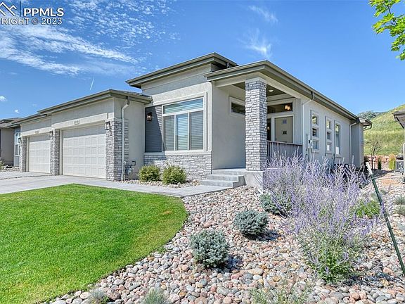 Looking for a west side home with access to trails & parks? Newly built? Low maintenance? This gorgeous patio home may be what you're seeking. This quiet community is located a short walk away from Ute Valley & Pinon Valley Parks. A short drive to Garden of the Gods, shopping, restaurants, microbreweries, University Village, Costco, UCCS, Manitou Springs, and even the Air Force Academy. Built in 2020, it still feels new! On the main level, you'll find 2 bedrooms & 2 full bathrooms amongst the open concept living space and access to the 2 car garage, including a gorgeous walk-out patio (Mountain Shadows Open space behind). Elegance abounds in various ways: beautiful hardwood floors, Kitchen Aid stainless steel appliances, quartz counters in kitchen & bathrooms, remote operated blinds, tall ceilings, and many windows that pour natural light & provide amazing views of the surrounding natural beauty. Downstairs, you'll find 2 more bedrooms, full bath with double vanity, storage, and a giant family room. Tankless water heater and high efficiency furnace are both environmental & economical. HOA maintains landscaping - including sprinkler control - along with snow removal of driveway and sidewalks! Optional monthly community gatherings during the warm months. Come see this beauty for yourself!