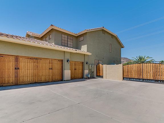 Beautiful large semi-custom 5 bedroom home on lush landscaped 30,000+ lot. Wood garage doors, fountains, and double front doors with custom iron security doors. Marble floors with granite insets, granite counter tops, eat in kitchen w/island. Formal dining room, and living room with custom window treatments. Family room overlooks the sparkling pebble tec diving pool and spa. Huge mature landscaped 30,000+ square foot lot with full size tennis court, built in BBQ area, sport court on the side and 13'' R/V gate. Plenty of room for all the hobbies. Mountain views, balcony off media room. Beautiful home in quiet neighborhood. No HOA! All measurements approximate.