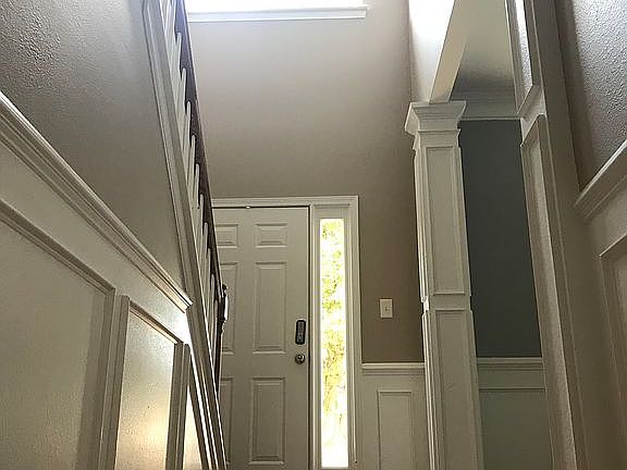This spacious 2143 sq ft house features 4 bedrooms with 2.5 baths. Beautiful open floor plan with lots of natural light! Move-in ready. Fresh paint in every room. All bathroom fixtures updated. Newly tiled floors in master bath, laundry room, and half-bath. Master bedroom has a vaulted ceiling and large walk-in closet. Master bath features custom tiled shower, separate garden tub, & double sink vanity. Sun-room off den for extra cozy living space or an office with a view! All appliances stay! New stainless steel kitchen appliances with full warranty. Front load washer and dryer in upstairs laundry room. Security system already wired. Attached 2 car garage. Quiet, well-kept family friendly neighborhood. Close location to multiple parks and shopping centers.