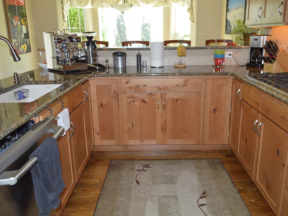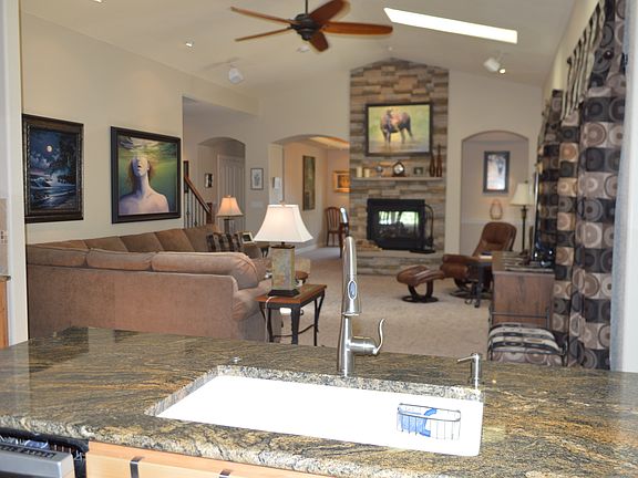 RV lover’s dream home. Custom built perfection on a large fenced lot within walking distance to the golf course. This pristine home takes your breath away. Large grand room with 2 sided stone f/p that opens to a kitchen built for a chef. Slab granite and Alder cabinets. Main level master with great lighting but very private. 5 piece luxurious master bath and large walk in closet. This is one for the perfect buyer that loves privacy and quality. Art lighting and surround sound wired through the house. Instead of 300+ a month for outdoor storage the motor home garage will fit the largest RV out there. Offering heat, electricity and a sewer outlet, this is the nicest RV set up I've ever seen. All the porches/decks are covered and have amazing views. The upper level offers a huge loft with a stone veranda and a custom wall bed in the craft room that is included. Basement is fully finished with gym, home theater and 2 more large bedrooms and great storage. No expenses were spared when building this masterpiece. Garage’s are oversized and heated for your toys. This price includes assuming the solar lease that is the best deal on utilities you'll find.
