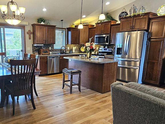 Welcome to this beautiful, well-maintained home located in the desirable NW Bismarck area. This stunning home has vaulted ceilings, an open floor plan with an abundance of natural light, all perfect for entertaining. The kitchen has stainless appliances, ample cabinets with pullouts, an island and a pantry. The flooring has just been upgraded to Luxury Vinyl Planking throughout most of the main level. A Primary Suite, another bedroom and a full bath complete this level. The garden level has been thoughtfully laid out. It consists of a large family room, two more bedrooms, bathroom, laundry room, mechanical room along with a large storage closet. For added comfort, the ceramic tile flooring is heated.