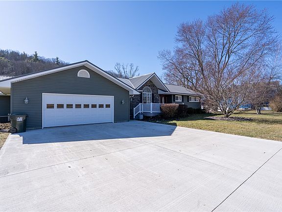 AMAZING RANCH PROPERTY outside the Village Of Canisteo! You will NOT want to miss this Gorgeous Home! Step inside this lovely, well designed home with an open concept kitchen, custom built cabinets, marble countertops, complemented by a formal dining room with Cathedral ceilings & recess lighting! Off the kitchen there is a spacious family room, also with cathedral ceilings and large ceiling fans! The primary suite features an extra large bedroom, a walk-in closet and a luxury ceramic shower!! The three nice size bedrooms and full bath are located on the other side of the home!! Next up, head down to the finished lower level w/ a custom made bar, and tons of extra living space, along with separate area for the washer/dryer ~mechanic room and generator!!! Walk outback to the beautiful pool house, with a