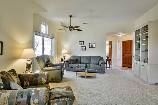 TOP FLOOR-END Unit with Vaulted Ceilings, VIEWS & PRIVACY!! Gorgeous views of golf course & hills-no rear neighbors. Upgraded kitchen with NEW: granite slabs, appliances (except fridge) & tile floor. Kitchen boasts a large pantry & a cozy eat-in area with morning sun. Indoor laundry, 1-car garage.