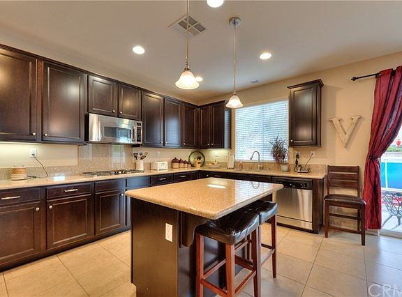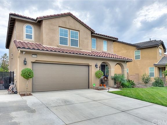Spectacular Eastvale home! Gorgeous home built in 2011 features 4 spacious bedrooms and 2.5 baths. There is a formal living room/dining room as you enter. There is neutral tile flooring in the entry that leads all the way throughout the kitchen. Spacious kitchen with rich dark cabinets, light granite counters, stainless steel appliances, double ovens, microwave and separate pantry! Large kitchen island adds more counter space and extra seating! Kitchen opens to the cozy family room with fireplace and lots of natural light. Upgraded wrought iron staircase leads upstairs to the 4 bedrooms. All bedrooms have ceiling fans and 2 secondary bedrooms have walk in closets of their own. Your master bedroom has large dual pane windows that also give you tons of natural light as well. There are 2 walk in closets! Master bathroom has been upgraded with granite counter-tops and upgraded fixtures. Separate shower and bathtub just add to the great features of the master bath. Downstairs sliding door opens to an entertaining backyard. Covered Aluma-wood patio with fan, above ground pool, and large cemented side yard with shed! Spacious 2 car garage and large driveway. Home is close to Cambria Park, shopping centers and 15 freeway. No HOA fees! This home is in move in condition, very clean, light and airy and ready for your family!