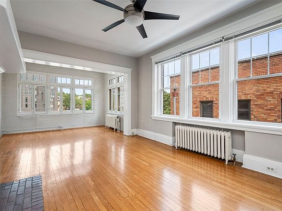 Amazing Shadyside location! Just feet from shopping and public transportation. This location boasts easy access to hospitals, universities, museums and great dining and shopping located in nearby Oakland, Squirrel Hill, and the rest of Shadyside. This top floor unit features generous room sizes, 2 large bedrooms, hardwood floors throughout, large closets, a naturally light front sunroom/den, and stunning dining room complete with paneled walls, coffered ceilings, and custom built-ins. Other amenities include fresh paint throughout, updated appliances, large lower-level storage, on site laundry, a public rear yard area, a private 1 car garage, and rear balcony that has nice views that overlook Shadyside. This building is pet friendly and units can be rented. The HOA fee covers gas, heat, water, sewer, exterior maintenance, common areas, and building insurance.