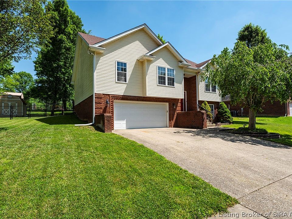 Contemporary bi-level home with a nice backyard; tons of space to run and play! Once inside, you'll see the newly refinished stairs, tall ceiling with railing so you can see into the kitchen. All appliances stay and you have a large space to cook and enjoy your meals. Vaulted ceiling in the living room with french door accents that lead to the partially fenced backyard. Main bedroom features a tray ceiling and too big closets. Lower level has an enormous family room with built-in cabinetry, a great area for a theater room. The 4th bedroom is large, and the 3rd full bath is so nice! @car attached garage. Newer HVAC system installed. Don't delay in seeing this one! Sq ft & rm sz approx.