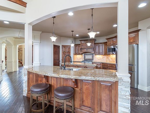 Luxury home in coveted community. This home features beautiful detail, design, layout, warm tones & spacious rooms. The oversized great room has 2 story ceiling, stone fireplace & large wall of windows. Chef's kitchen w/ rough cut granite counters, travertine splash, center island, newer high end appliances, spacious pantry & functional desk area off kitchen. Extensive trim throughout, office w/ french doors & ceiling detail. Entry displays rounded stairwell and formal dining w/ wine storage. All carpet replaced 2 years. Main level owners room has vaulted ceiling w/ beams, private walled patio, bath with walk in shower, soaker tub, dual vanity, full tile, huge walk in closet. Secondary bed has private ensuite. Upper level features a large bonus room complete with wet bar, desk/project area, theatre room, storage room, hobby room, and 2 bedrooms with jack & jill bath. Mature landscaping, 1/2 acre lot, covered patio. Coveted Legacy community with small golf course, two pools, tennis, walking paths and ponds.