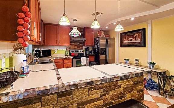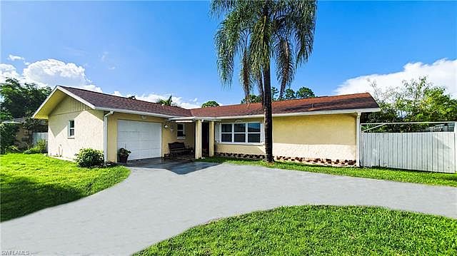NEW TO THE MARKET! Gorgeous 4 bedrooms 2 bathrooms waterfront house with easy access to Downtown Naples and a short drive to the white sand beaches. This beautiful well-maintained house features an open concept floor plan with laminate throughout. All rooms are spacious with plenty of natural light, perfect for entertaining or relaxing with your family. The Master bedroom is complete with dual sinks, a tub and shower, and a large walk-in closet. The kitchen offers a breakfast bar with custom countertops and stainless steel appliances. The house comes with tons of upgrades. New impact windows, new UV light water filtration, A/C 2016, roof 2017, freshly painted interior, outdoor kitchen, screened lanai, fenced backyard. Plenty of room for a pool! It is located on a quiet street. No HOA, no restrictions. From here, its just minutes to the sugar sand beaches.