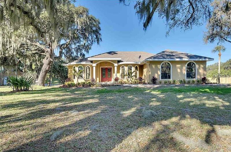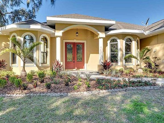 Don't miss the opportunity to own this stunning executive pool home on 2+ private acres, with plenty of room for RV's, boats and all your toys! has a graded leveled are in backyard just for RV parking , with utility hook ups available. Must truly see to appreciate this exciting floor plan with views of the expansive pool and the new tiled pool deck from most rooms! Notice the attention to detail in each room; lighted art niches, trey ceilings and crown molding, curved archways, new dark hand scraped wood flooring and pocket glass sliding doors throughout. Wonderful custom kitchen is appointed with Corian counters, s/s appliances, new LG french drawer fridge, new Kitchen Aid cook top, and is open to the family room with great outdoor views! it has two master bedrooms at the far ends of the house away from each other. The master bedroom suite at front of house, is tucked away from the rest of the home in its own wing. Just close the french doors in the master bedroom foyer and relax at the end of a hectic day. The master bath has a huge walk in shower, soaking spa tub. second master back of house has a new expanded closet with professional designer closet. it huge! in that master is a fireproof waterproof safe for valuables and documents. weighs over 500lbs empty. the third and Fourth bedrooms with french doors can also be used as an office or bonus room and has it's own private bath. don't forget the new metal roof and the detached 3 car garage added with last few years. Family and friends will be thrilled by the very large pool and deck ( 33 x 51) with 2 additional covered seating areas ( 16x16 and 13x12), all fully privacy fenced and backing to conservation for maximum privacy. New Florida Friendly landscaping and fresh painting inside and out complete the package. Quick access to I75 makes an easy commute to Tampa. Bradenton Anna Maria Island, or St Pete beaches are only minutes away.