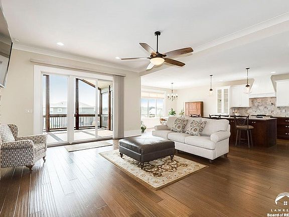 AWESOME W/O/W/U RANCH HOME in Fox Chase South w/5 beds/3 baths/3 car garage near Langston Hughes, Rock Chalk Pk & K-10/I-70! LARGE fenced backyard (13,347 sq/ft) -- perfect for a pool or letting the kids/pets run! Main level features open & spacious kitchen/dining/living room. Large concrete island & SS appliances incl gas range. Bamboo floors, concrete fireplace & cable handrail. Gorgeous master suite! 2 other beds on main. Bsmt features 2 beds, bar, bath, media & safe room! Screened porch/great patio.