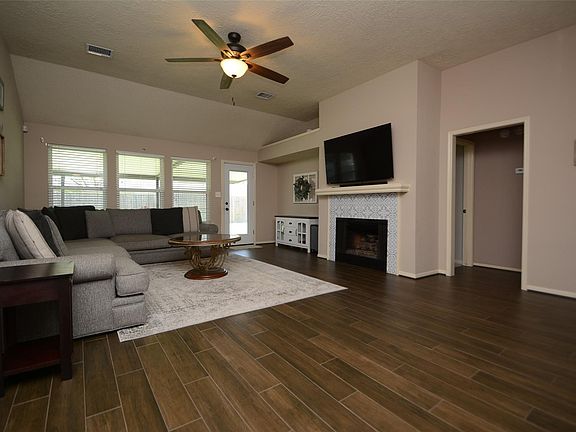 MULTIPLE OFFERS RECEIVED! Stunning One Story with Tons of Upgrades! Well Maintained w/Newer Roof & HVAC System, Tons of updates throughout: Recent Wood look tile in Entry, Living Room, Kitchen and Hallways. Kitchen remodeled w/Granite Countertops, Travertine Backsplash, SS Under Mount Sink w/New Faucet, Updated Appliances: Dishwasher & Gas Range & Microwave, Resurfaced Cabinets w/new Hardware, Upgraded Lighting, Breakfast Bar/Nook, Huge Living Room w/Vaulted Ceiling, Gas Log Fireplace, Custom Tile Work on Fireplace, Recent Double Pane Windows, New Bronze Door Knobs Throughout, Primary Bedroom w/Barn Door to Walk in Closet, Double Sinks, Updated Tile Floors & Tiled Shower w/Updated Fixtures, Split Floor Plan, 2nd Bath w/New Tile Floors, Large Vanity w/New Fixtures! Huge Outdoor Living Space with Covered Patio & Large Backyard, Acclaimed Klein ISD, LOW TAXES AND HOA! Community Playground within walking distance, Easy Access to Major Highways, Shopping, Dining & Entertainment!