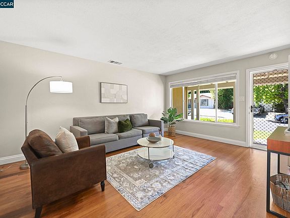 This charming and cute single level rancher home in the "States" streets is located on a quiet street within walking distance to Clayton Valley Shopping center, Highlands Park, Highland Elementary & Pine Hollow Middle School with convenient access to Clayton Valley High School. Ideally located near shopping and amenities, you'll enjoy being near downtown Clayton, Mt. Diablo and lots of parks and outdoor space. This home is ready for it's next owners offering a paver driveway, walkway & front porch welcoming you into the spacious living room. The updated kitchen and dining area are ideally located overlooking a stepdown family "great" room that will become the gathering place. Transom windows & sliders allow you to feel connected to nature and lead you out to a mature backyard area perfect for relaxing, play and those wanting to garden. 3 bedrooms, indoor laundry the bathroom fill the left side of the home. Dual pane windows/sliders, a newer HVAC, water heater & garage door, upgraded electrical & plumbing, & French drain add so much value. Fresh interior paint complements hardwood & tile floors. An attached 2 car garage has room for storage and there's room to expand if desired. Enjoy the walkability of this highly desirable neighborhood in Concord and all the nearby amenities!