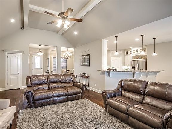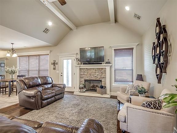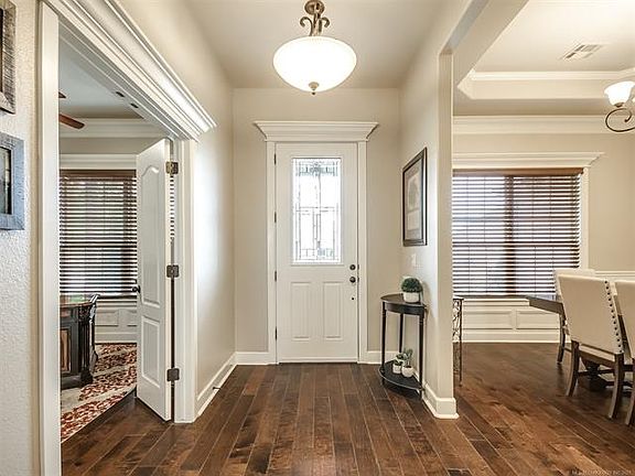 WOW! IMMACULATE HOME WITH NO NEIGHBORS BEHIND YOU! 4 bed 4 bath + office and bonus room! 3 car garage with additional storage room that's climate controlled PLUS a storm shelter! Tons of character and quality finishes: hardwood floors, crown molding, 3 cm granite throughout, huge master closet etc. Enjoy yourself on the fabulous extended patio w/ vaulted ceiling. Beautiful curb appeal with newer professional landscaping & sprinkler system. Community pool and playground!