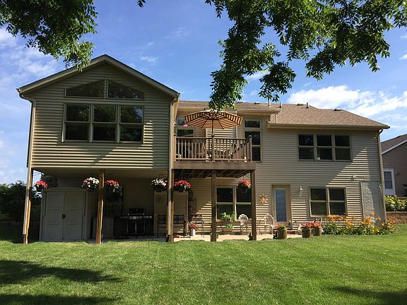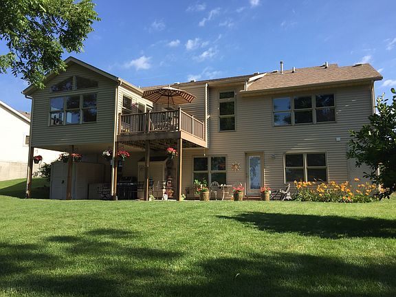 Beautiful finishes throughout this custom built Chuck Pekios home. 4 seasons room with a fabulous view to a rolling hillside, vaulted ceiling in great room and tray ceiling in the lg dinette with wainscotting trim detail. Abundance of maple cabinetry in the kitchen w/roll out shelves, under cabinet lighting, and corian counters. Custom built bookcase and china hutch as well as maple wood flooring are some additional features. Master bedroom is spacious with a spa master bath w/ heated floors. Loads of natural light throughout the home, pella windows with blinds built in. Main level bath has tiled shower just off the front bdrm. The LL is perfect for entertaining. A 2nd gas fireplace warms the large rec room. Serve some snacks and drinks from the kitchenette while you're watching a movie or game in the theater room. Guest BR and bath finish off this lower walk out level. Back yard is amazing with a fabulous view of mature trees and rolling hills. Easy access to interstate.