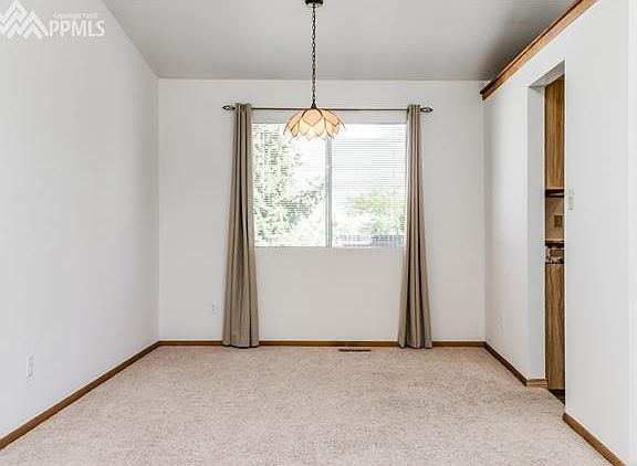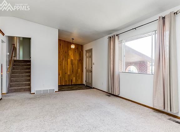 This home is a jewel in a convenient location on corner lot backing to Homestead Park and near shopping. Views east and west with Pikes Peak seen from Master. Nicely updated kitchen with new appliances. Vaulted ceiling on main floor provides spacious feel. Pellet Stove insert in lower level Family room is a valuable heat source for entire home. Bonus room off lower level Family Room could be sun room or possible hot tub. Upstairs bedroom includes bonus room for games, loft or storage. Bedroom closets designed with Cedar Flooring. Basement may be 2nd Family Room but includes closet and privacy door giving option for 4th bedroom. Furnace room includes storage space. Garage nicely finished and painted. One nice feature of this home is the separate living areas. The lower level has a family room with fireplace and walkout to the back patio and the huge back yard backing to City Park. RV access also.