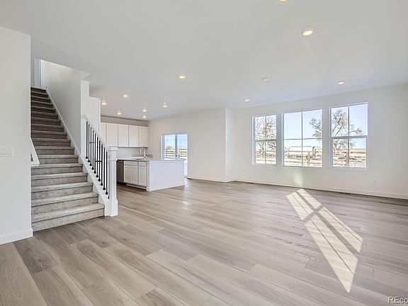 Backing to a greenbelt! This stunning residence showcases an expansive floor plan highlighted by LVP flooring throughout the main level. The chef's style kitchen is equipped with stainless steel appliances and quartz countertops, seamlessly integrated with the spacious great room, study, and a convenient half bathroom. Upstairs, indulge in the expansive owners' suite featuring an en-suite spa-style bathroom. Three additional guest bedrooms, another full guest bathroom, and a dedicated laundry room complete the upper level amenities. The basement is unfinished waiting for your personalization. Why have one lake, when you can have two? The namesakes of our community provide opportunities to paddleboard, kayak or canoe. And anglers will appreciate the six designated fishing spots dotting the lakeside nature trail and wide open spaces and the chance to catch a bass, crappie, sunfish or bluegill. (Friendly reminder: make sure to have your Colorado Fishing License with you.) Of course, a day at the lake doesn’t mean you have to be on the water. There’s plenty of lakeside space for walking and having a picnic under the pavilion, that invites you to soak up the sun and take in the view. The community center offers an abundance of recreation for everyone including a Olympic size pool, splash pad, BBQ area, basketball and pickle ball courts, coffee bar, sitting room, exercise room, a great place to host parties inside the club house. MOVE IN NOW!!!**Contact Lennar today about special financing for this home-terms and conditions apply**