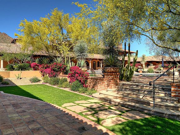 VIEWS & LOCATION! Great value at the base of Camelback Mtn with stunning views in all directions! A rare chance to own 4.3 acres in Paradise Valleys premier location! Built 2000 by Nance Construction, 10,000SF. Attention to architectural detail & decorative finishes to create a gracious estate that quietly speaks of harmony in materials, including fabulous custom tile, wood & plaster. 5 bedrooms, 8 baths,8 fireplaces, media rm, study, private master suite w/balcony, charming guest casita,