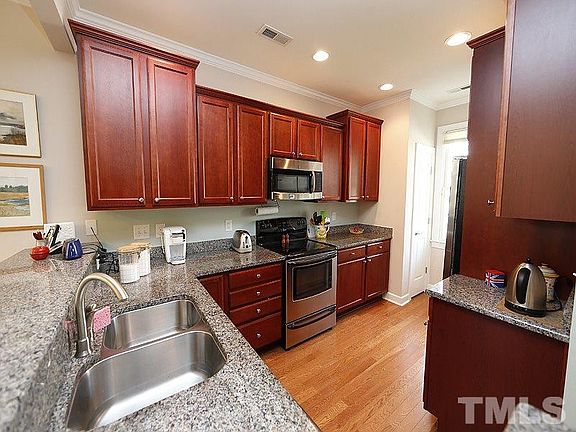 Gorgeous transitional end unit townhome in Valley Crest - Hope Valley Farms w/ first floor master suite & great privacy! Kitchen w/ dark maple cabinets/granite countertops/stainless appliances, open dining room w/ bay window, living room w/ vaulted ceiling/fireplace/gas logs/ceiling fan, second floor loft plus walk-in storage. Covered front porch plus rear patio. Lots of hardwood and tile flooring. Convenient to Duke/UNC/RTP/I-40/Southpoint Mall. Walk to neighborhood YMCA and walking trails. Must See!