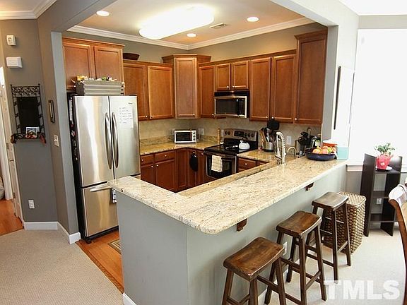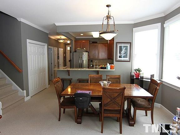Incredible First Floor Master Bedroom End Unit Townhome in SW Durham! Kitchen w/white cabinets/quartz countertop/subway tile backsplash/stainless appliances, open dining area w/bay window, large living room w/vaulted ceiling & fireplace/gas logs, master bedroom w/vaulted ceiling/dual closets, master bath w/dual sinks/tub/sep shower, 2nd bedroom/full bath on 1st floor, loft/bedroom/full bath on 2nd floor & huge walk-in attic! Rear patio. New white interior paint & LVP flooring. Super floor plan. Must See!