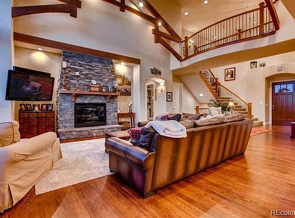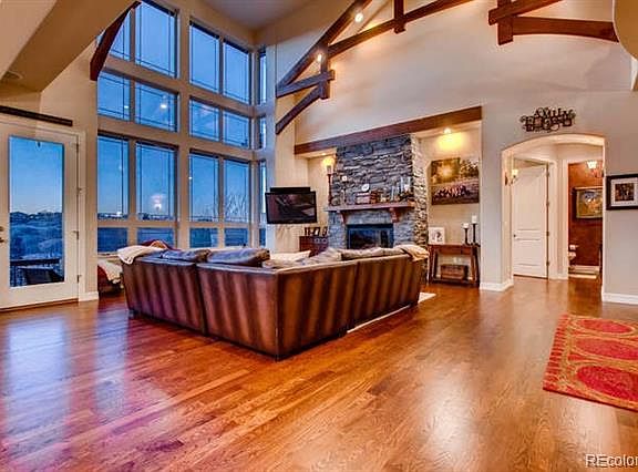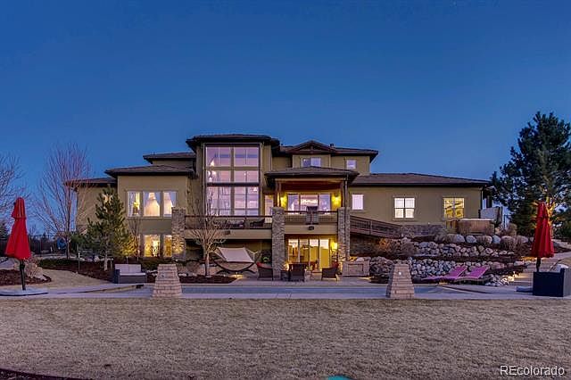 Unparalleled craftsmanship and exceptional amenities in the coveted neighborhood of Pradera! This captivating mountain rustic home is situated perfectly on its 1.26 acre lot to enjoy sweeping views of the golf course & the amazing colorful Colorado sunsets. Elegant custom features include warm wood floors, granite counters, high end cabinetry and main floor master suite & study. The gourmet kitchen offers high-end appliances, butlerâs pantry & walk-in pantry. Two staircases lead to upper floor where you will find three spacious bedrooms & two full bathrooms. Entertain in your walk out basement featuring a wet bar, theater, recreational area & guest room with en-suite. Unfinished area of the basement offers the perfect space for storage & home gym. Soak in the sun in your luxurious pool or gather around the fire & take in the breathtaking view of the stars. Fenced yard offers plenty of privacy & tons of room to roam. Oversized four-car, side load garage & large circular driveway.