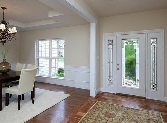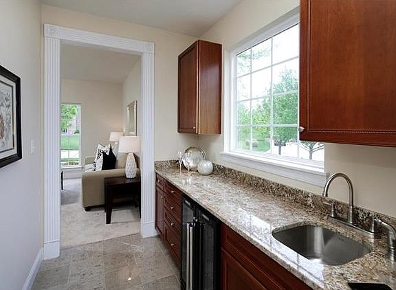 This beautiful 4BD/3.5 BA home awaits.Youll be welcomed by the gracious entry as you step inside the spacious main level.On either side of the entry are the living room w/ a wet bar complete w/wine cooler & dining room w/trey ceiling & wainscotting.All leading to the stunning great room w/2-story windows, beautiful wood floors, fireplace w/marble surround & built-ins.The kitchen and breakfast room have expansive granite counters, high end stainless steel appliances including a professional gas range, custom tile back splash & 42 upper kitchen cabinets. The generous first floor master offers a bay window, trey ceiling & walk-in closet. The master bath has a double vanity, corner soaking tub & walk-in shower, a private retreat. Upstairs youll find a fantastic loft w/vaulted ceilings, 3 additional bedrooms, & 2 full baths.There is also a walk-out lower level, 3 car garage, lawn sprinkler system & amazing deck. Freshly painted with new carpeting throughout, a perfect place to call home.